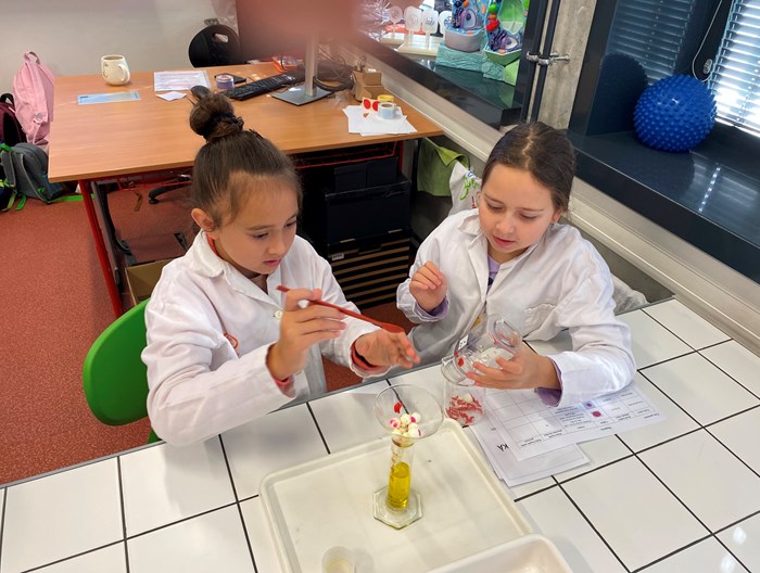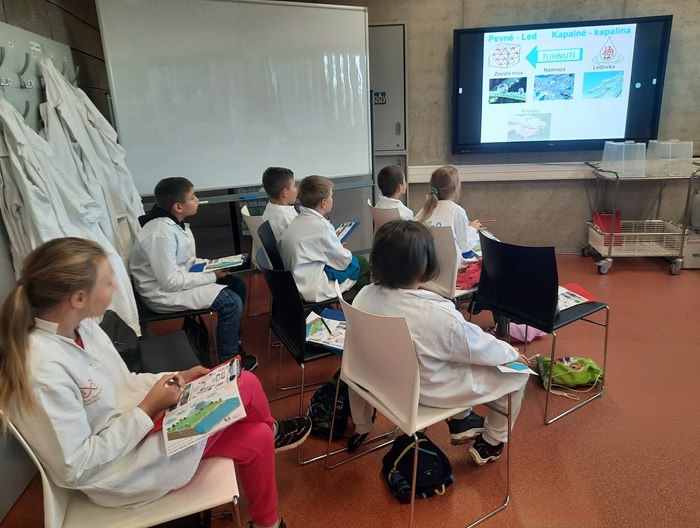 kádinkami, teploměrem, odměrnými válci. Dozvěděli se mnoho zajímavého o přeměně skupenství vody a