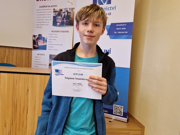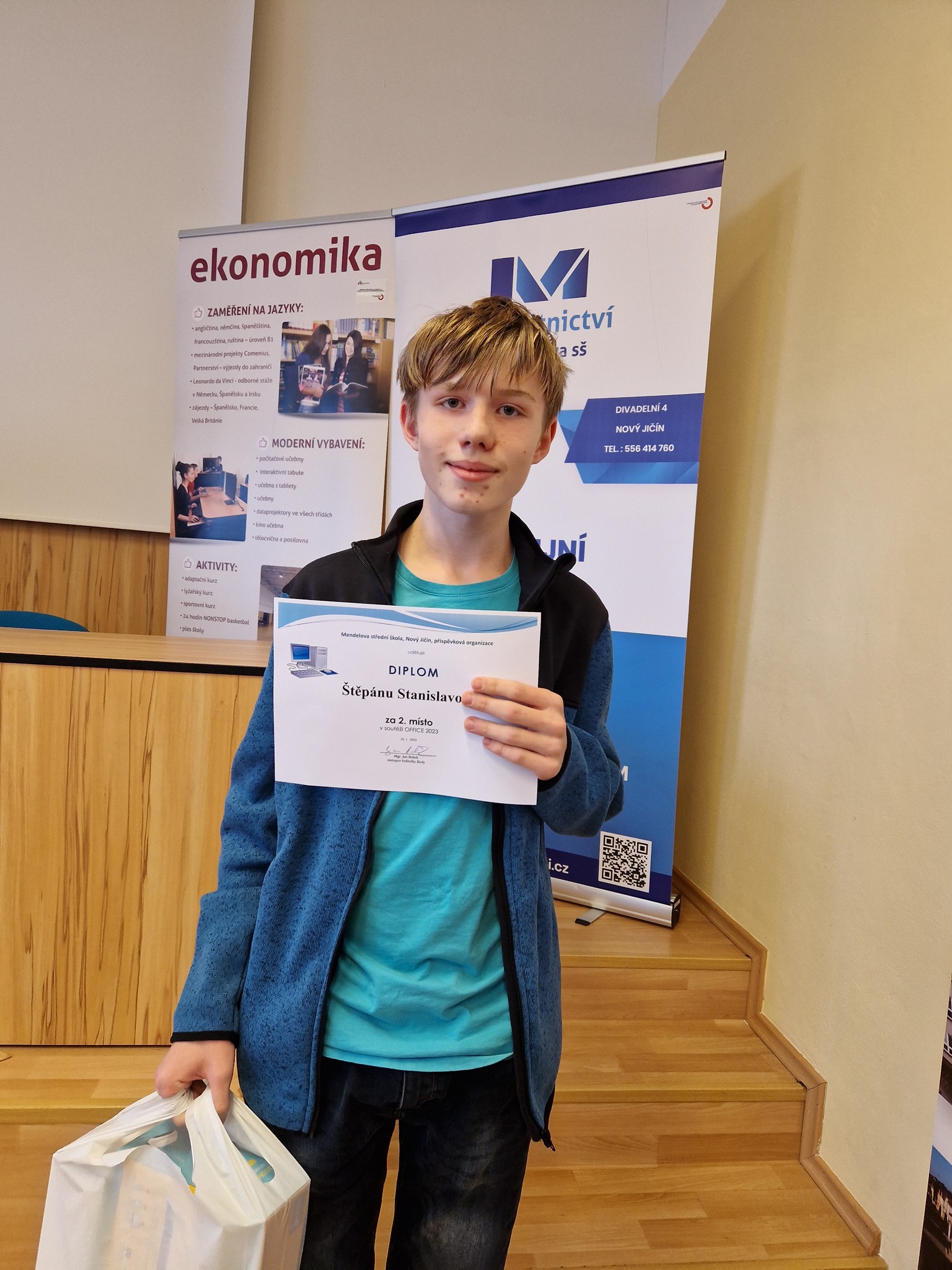 Dne 26. 1. 2023 se Štěpán Stanislav (žák VII. C) zúčastnil na Mendelově střední škole v Novém Jičíně 2. ročníku regionální soutěže Office 2023 pro ZŠ a nižší ročníky gymnázia.