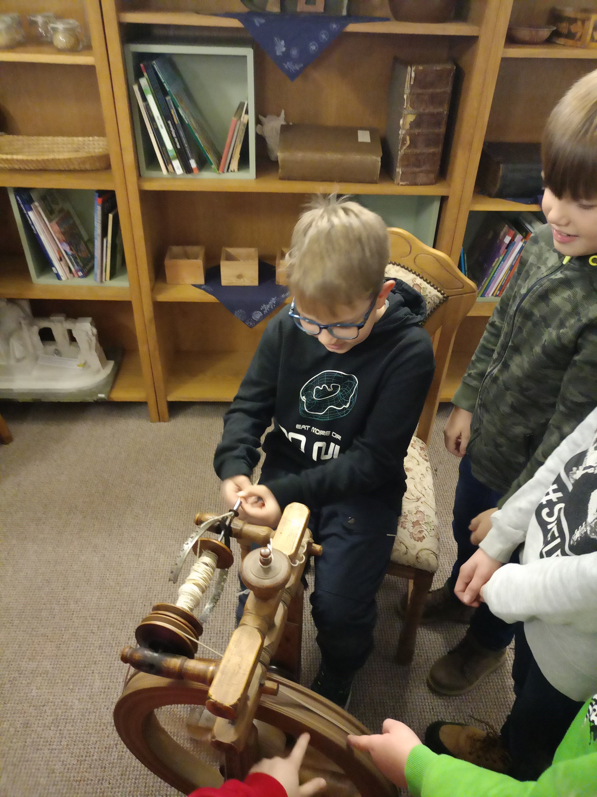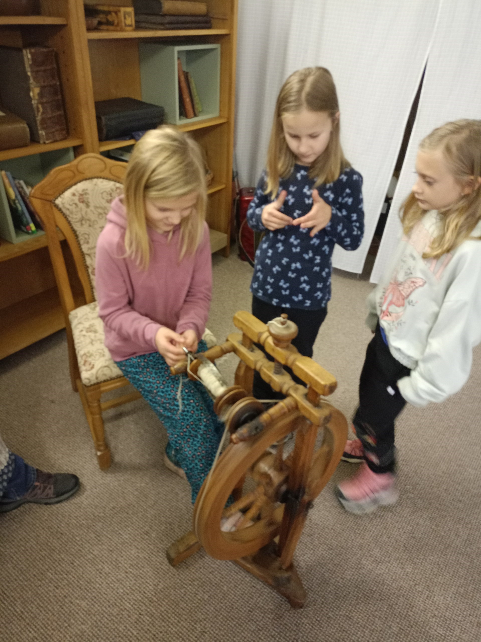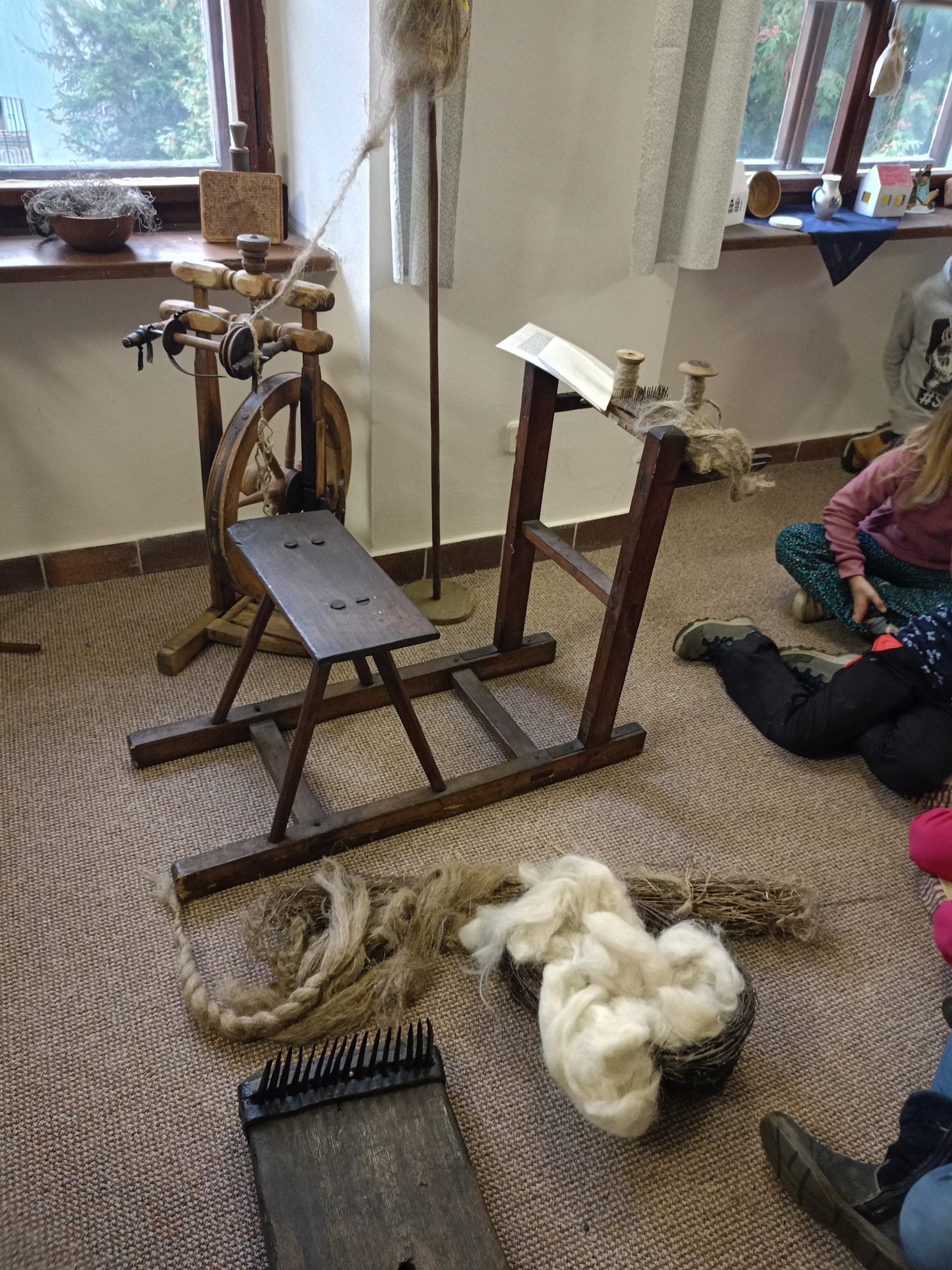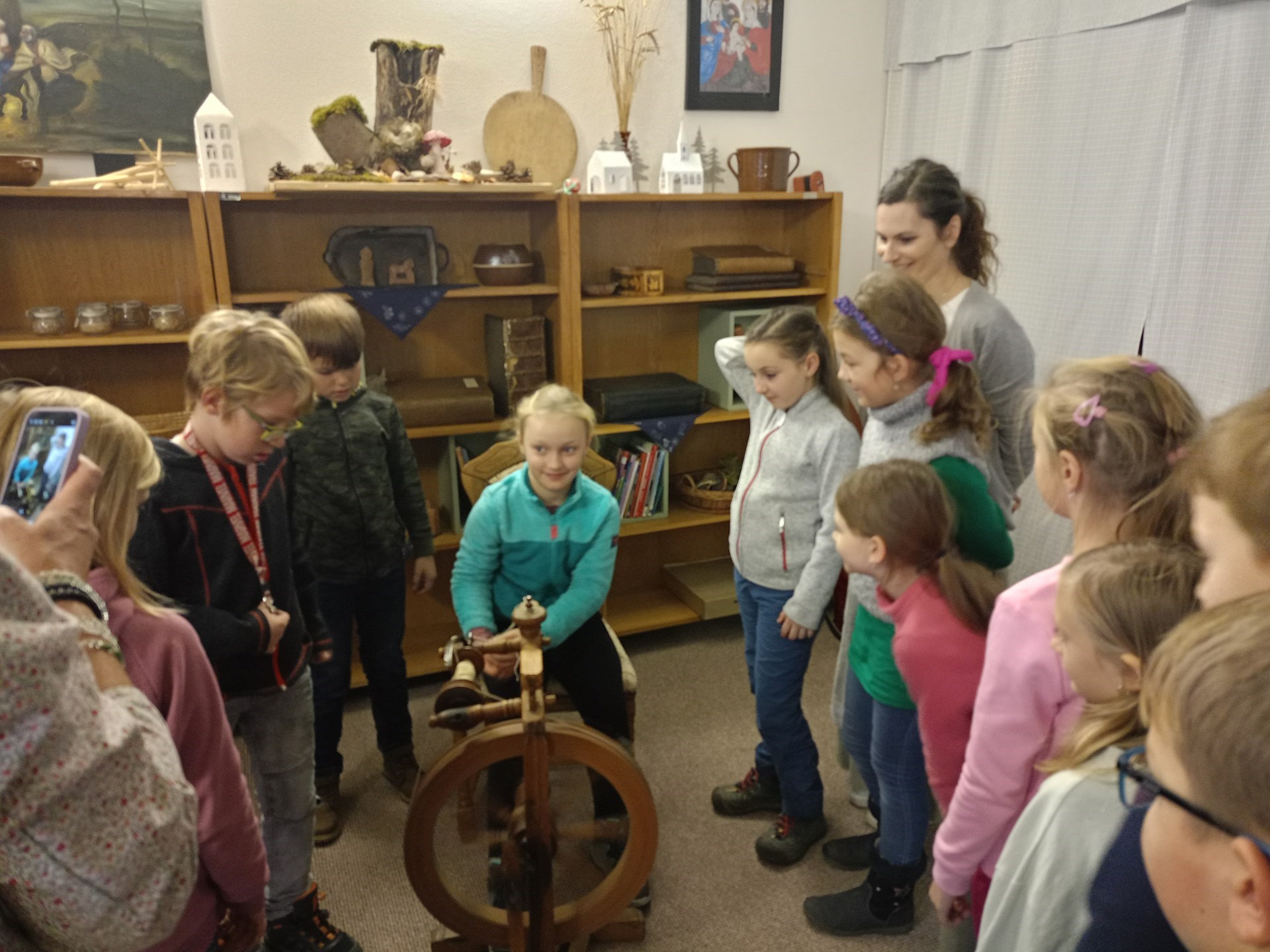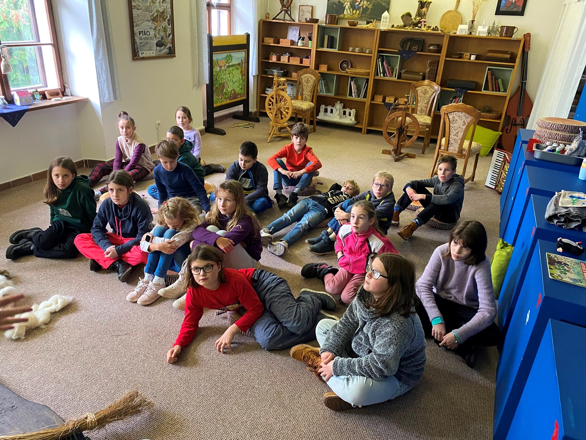 V listopadu se žáci 3.A a 4.A vypravili do muzea Žerotínského zámku za starými tradicemi. Tématem bylo, co dělali naši předkové – především ženy a dívky za dlouhých zimních večerů – draní peří či předení. Děti se zapojily, objevovaly dlouhou a pracnou cestu, která vedla od lnu ke košilím, sukním a šátkům. Každý si mohl vyzkoušet předení na kolovratu. Děti si také zazpívaly písně, které se u předení zpívávaly, a nakonec si namalovaly modrý kvíteček lnu na svůj vlastní lněný pytlíček na bylinky. Před programem si třeťáci dlouhou chvíli zkrátili procvičováním vyjmenovaných slov výukou venku, čtvrťáci si zase zažili slovní úlohy v praxi naživo v areálu zahrady Žerotínského zámku.